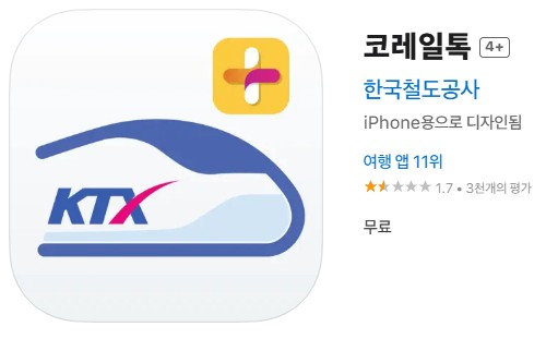- 스마트폰에서는 코레일톡 앱이 코레일 공식 예매 앱이다.