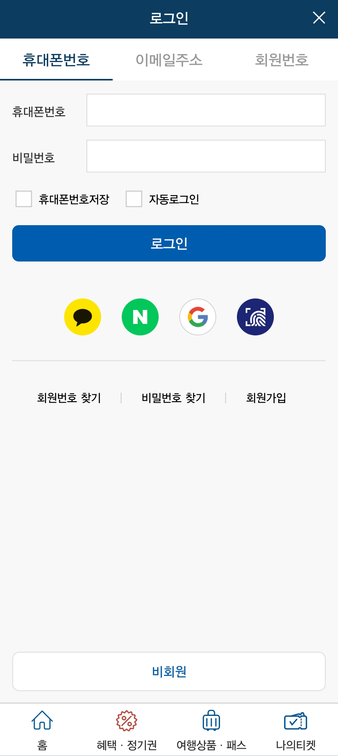 - 코레일 멤버십 아이디로 로그인 (회원가입 동일하게 가능)