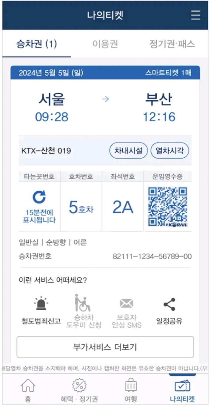 - 가족·지인에게 문자·메신저로 승차권 전달 기능 사용 가능